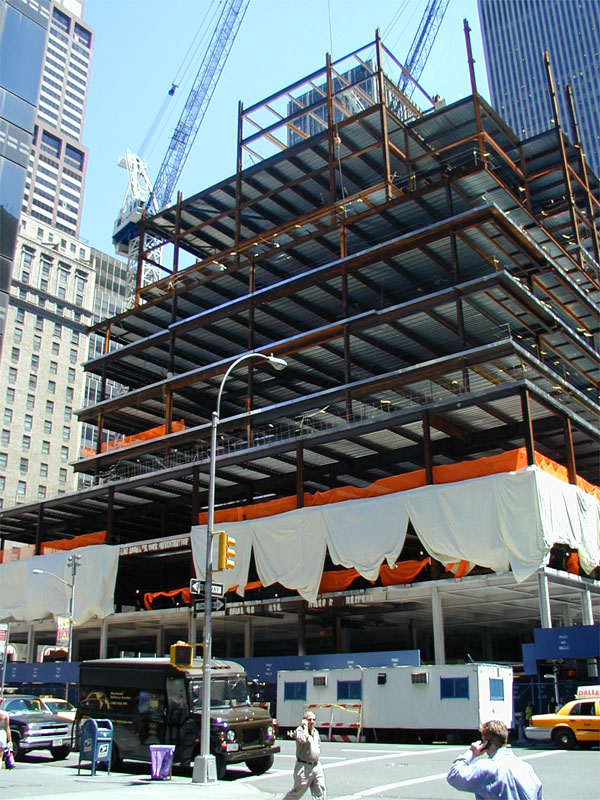 The view on 745 Seventh Avenue from the corner of 7th Avenue and 49th Street during the construction phase, in July of 2000.
