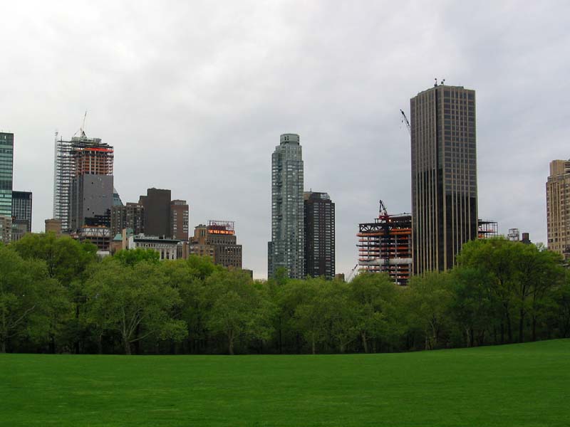 The view across Central Park's Sheep Meadow on 26 May 2003. Hearst Corporation Headquarters will rise to the left of Central Park Place.